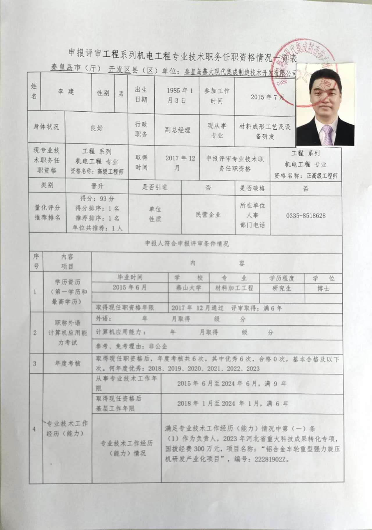 關(guān)于李建同志申報工程系列機電工程專業(yè)正高級工程師職務(wù)任職資格情況一覽表的公示
